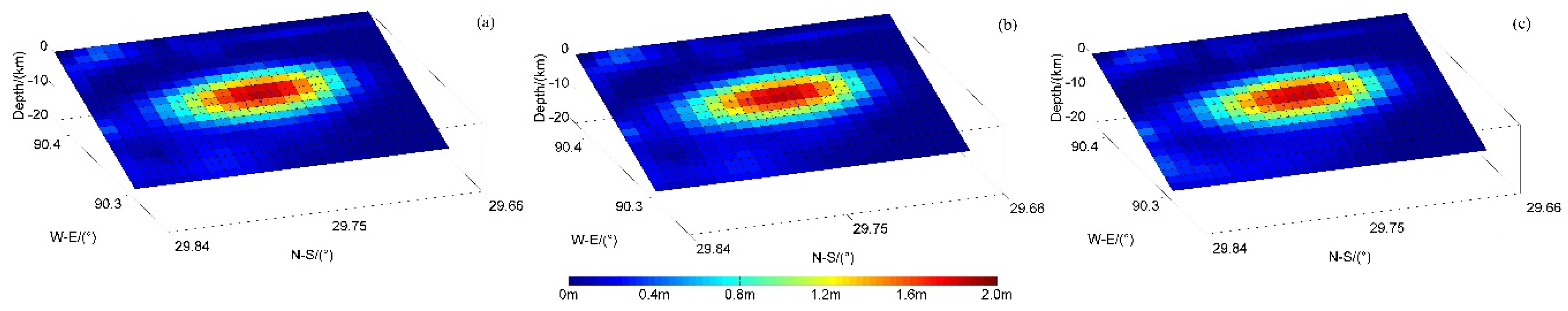 - Xu, C.; Liu, Y.; Wen, Y.; Wang, R. Coseismic slip distribution of the 2008 MW 7.9 Wenchuan earthquake from joint inversion of GPS and InSAR data. B Seismol. Soc. Am. 2010, 100, 2736–2749. [Google Scholar] [CrossRef]