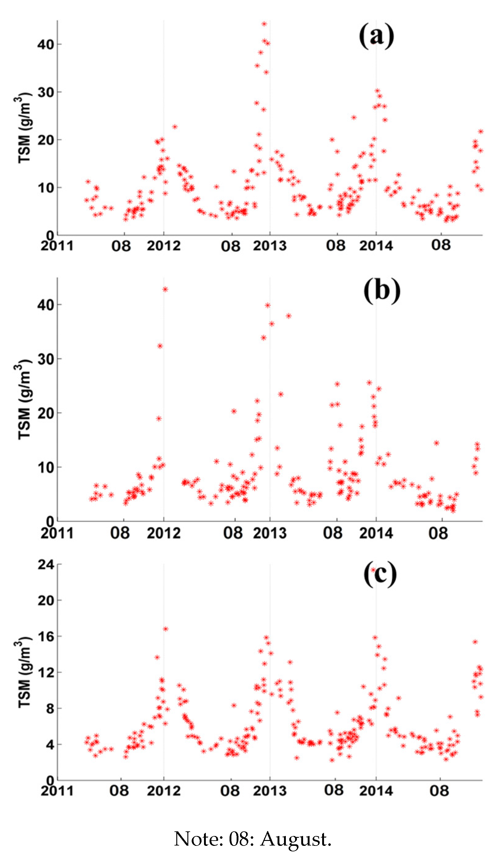 3.3. Seasonal Variation of TSM in the YRE