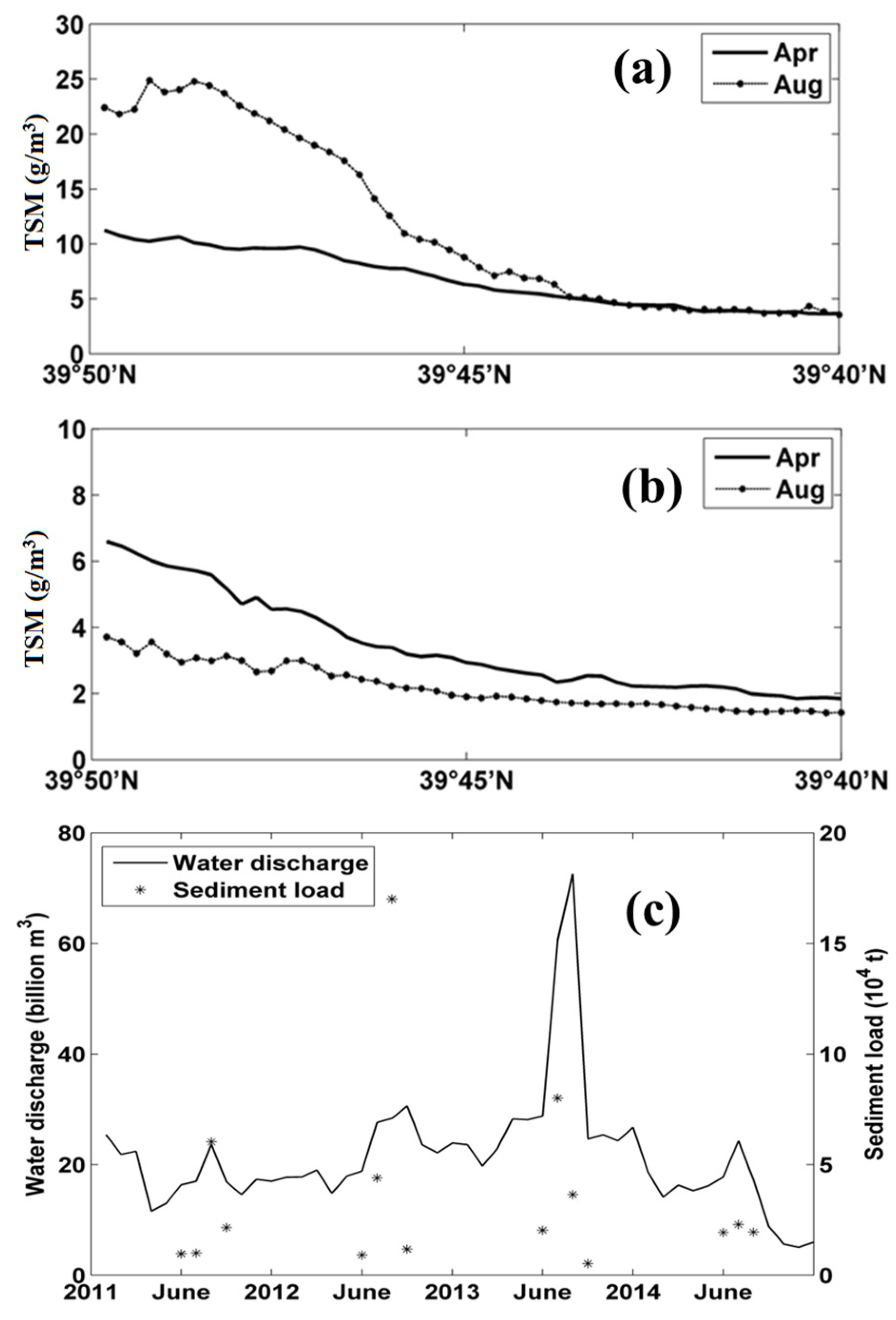 - Pang, C.; Yu, W.; Yang, Y.; Han, D. An improved method for evaluating the seasonal variability of total suspended sediment flux field in the Yellow and East China Seas. Int. J. Sediment. Res. 2011, 26, 1–14. [Google Scholar] [CrossRef]