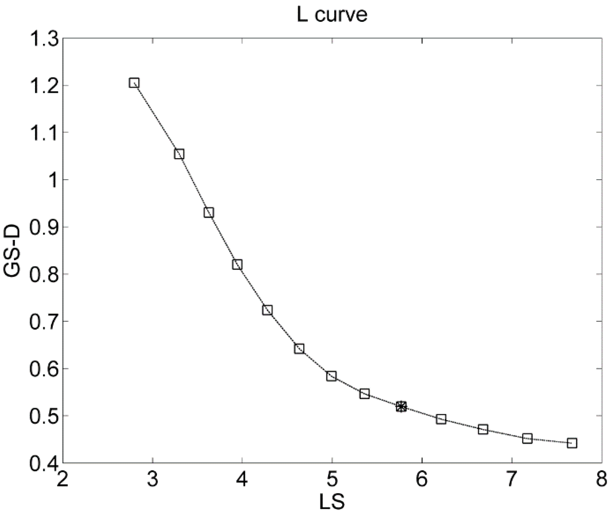 - Hansen, P.C. Analysis of discrete ill-posed problems by means of the L-curve. SIAM Rev. 1992, 34, 561–580. [Google Scholar] [CrossRef]