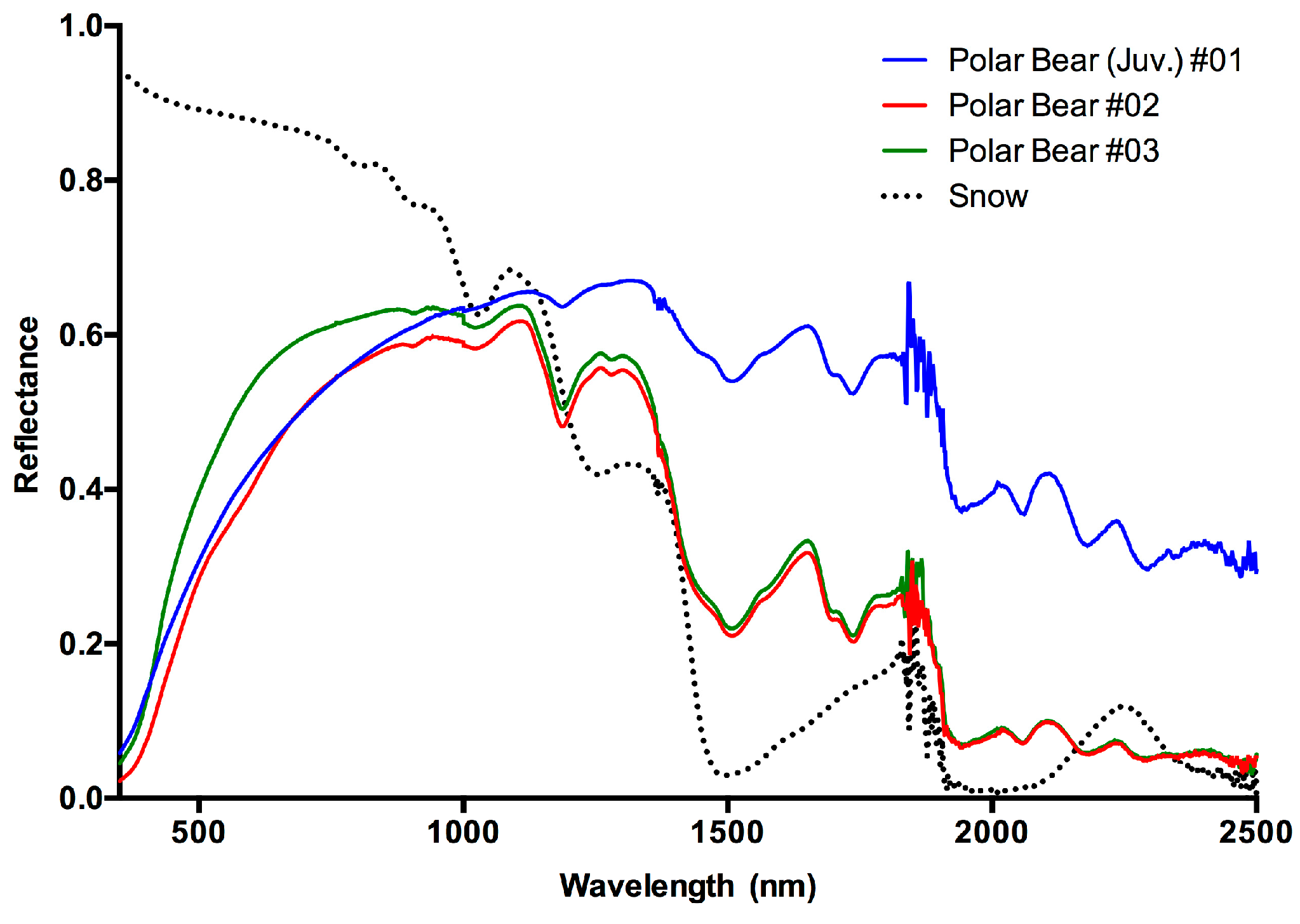 Leblanc, G.; Francis, C.M.; Soffer, R.; Kalacska, M.; De Gea, J. Spectral Reflectance of Polar Bear and Other Large Arctic Mammal Pelts; Potential Applications to Remote Sensing Surveys. Remote Sens. 2016, 8, 273. https://doi.org/10.3390/rs8040273