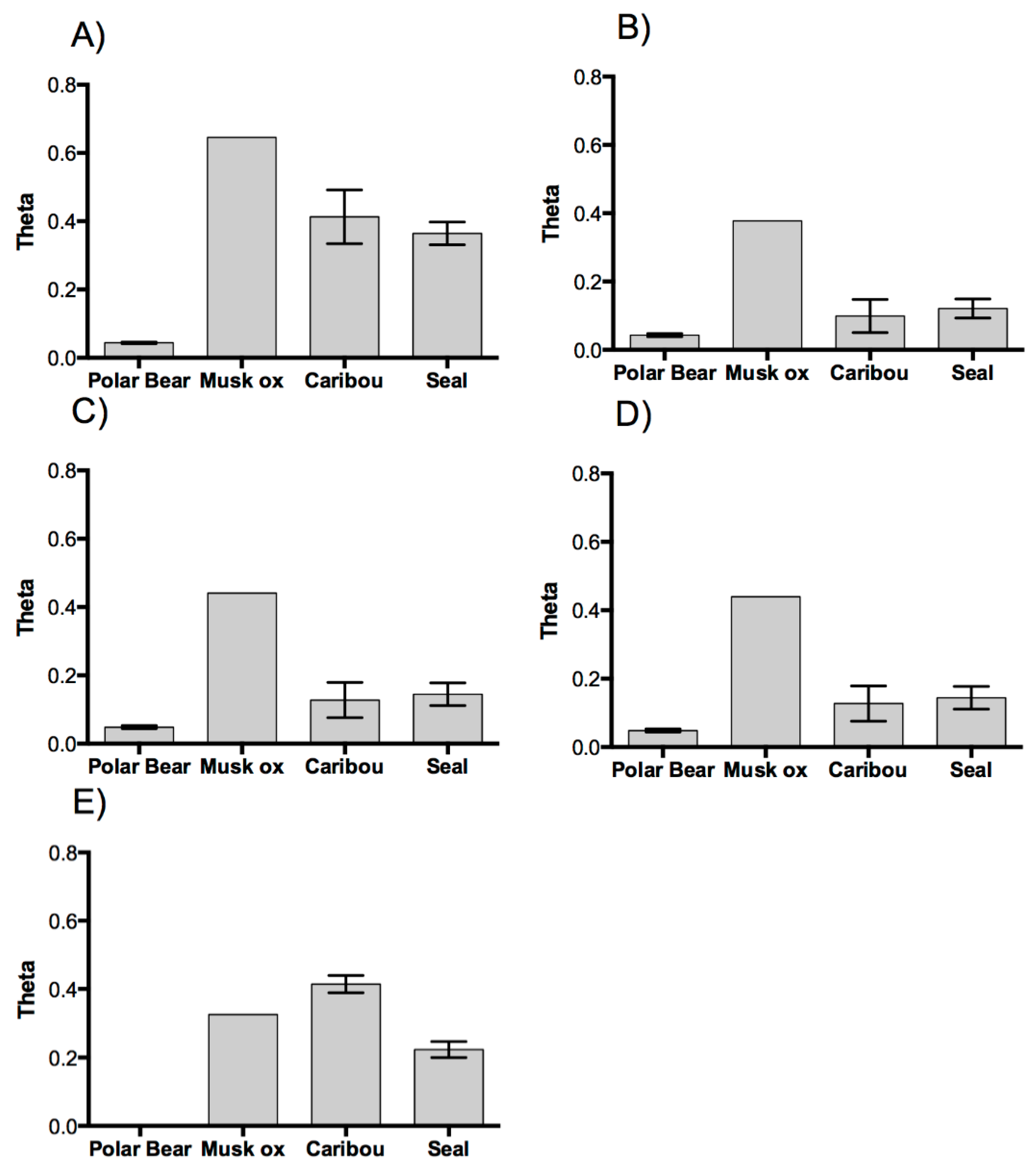 | Muskox | 1 | 0.01 | 0.02 | 0.07 | −0.01 |