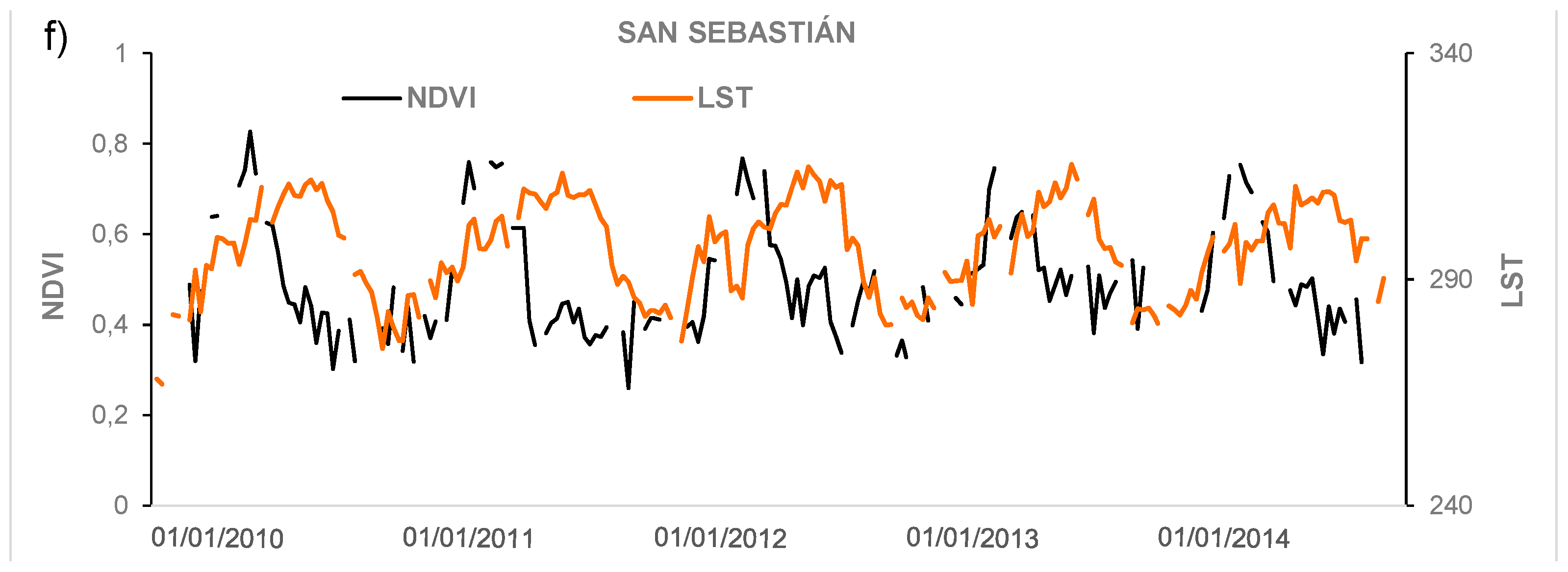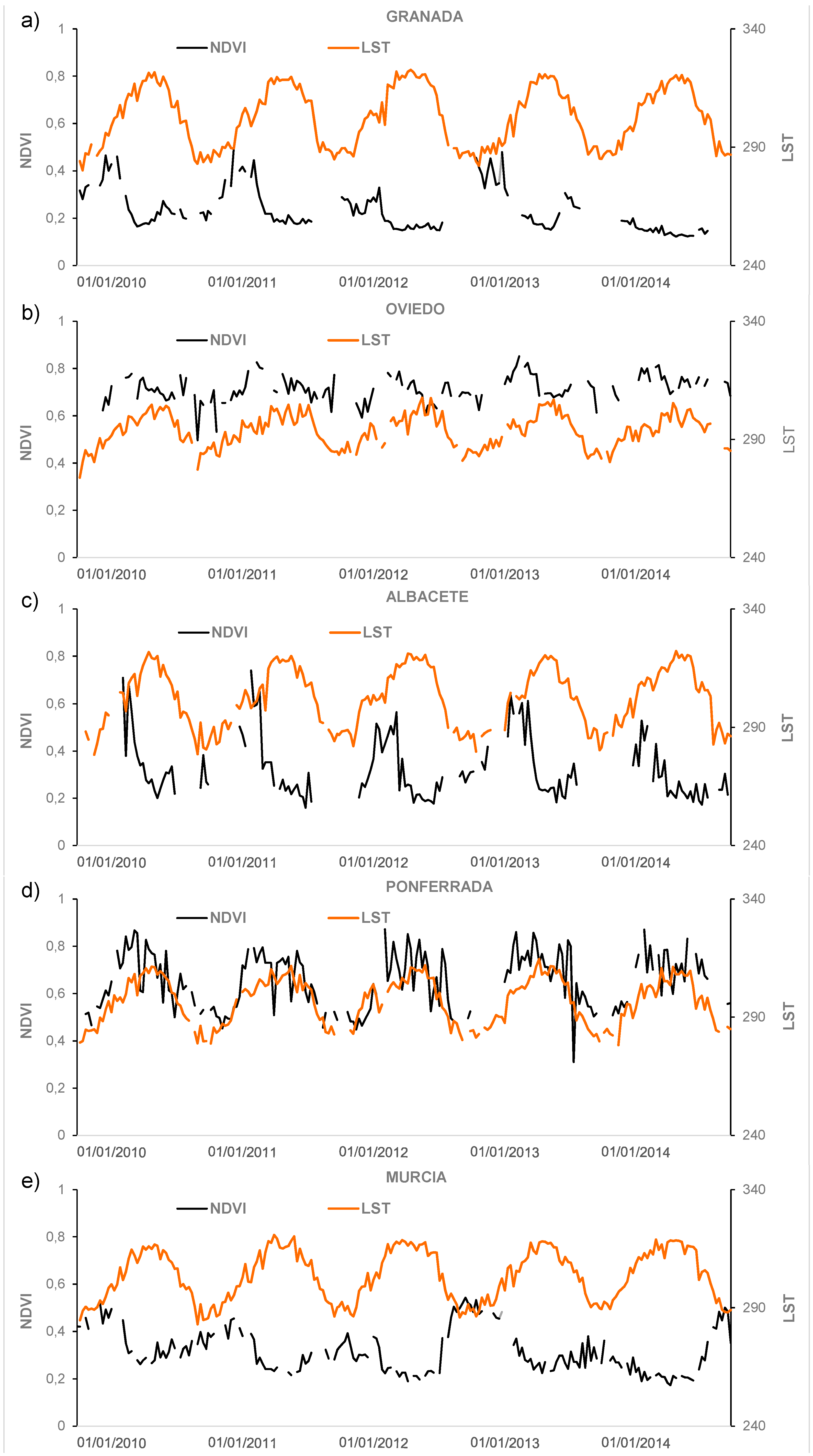 2.1.1. MODIS LST, NDVI and NDWI