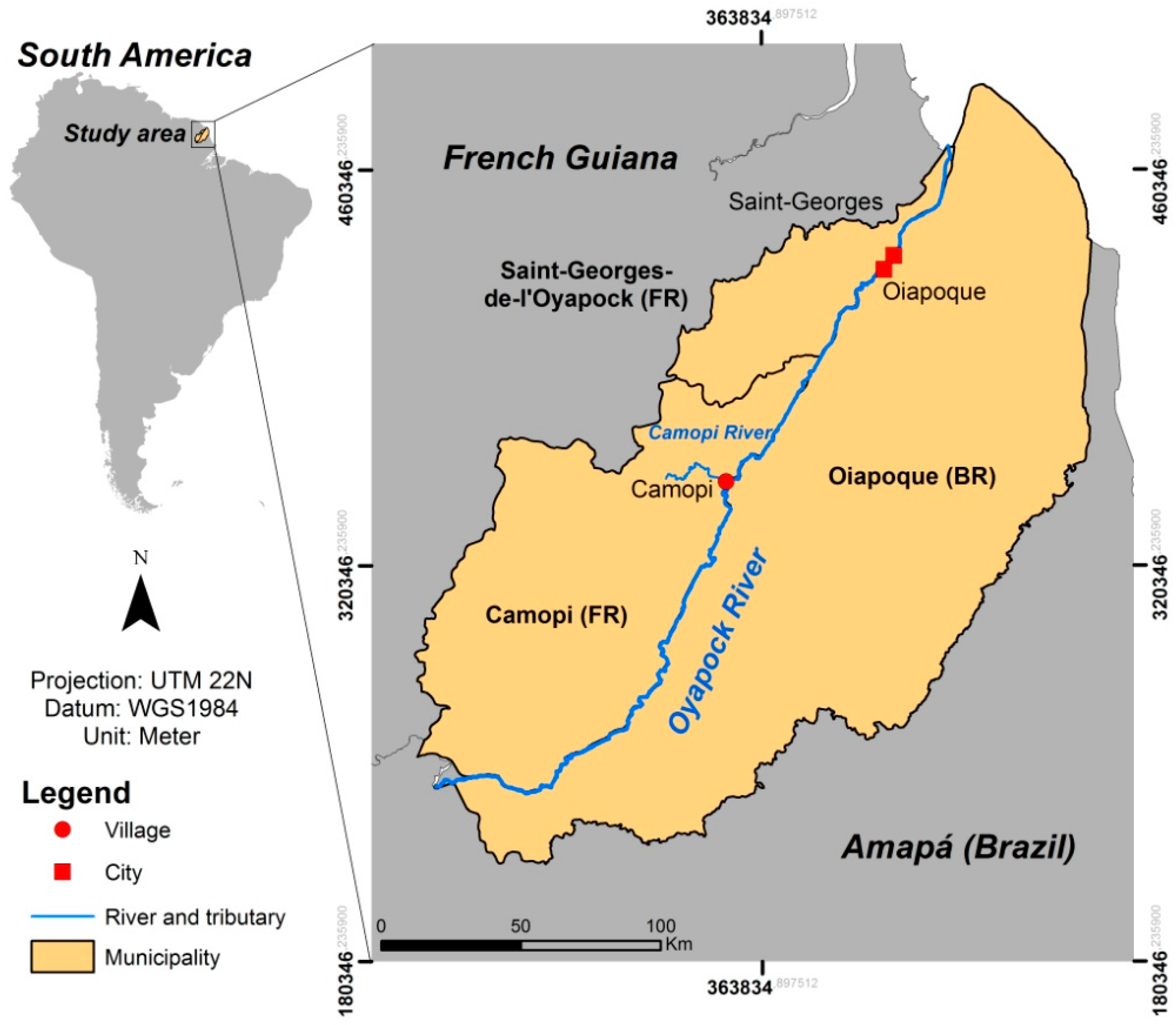 - IBGE. Oiapoque. Available online: http://cod.ibge.gov.br/12XVS (accessed on 12 February 2015).