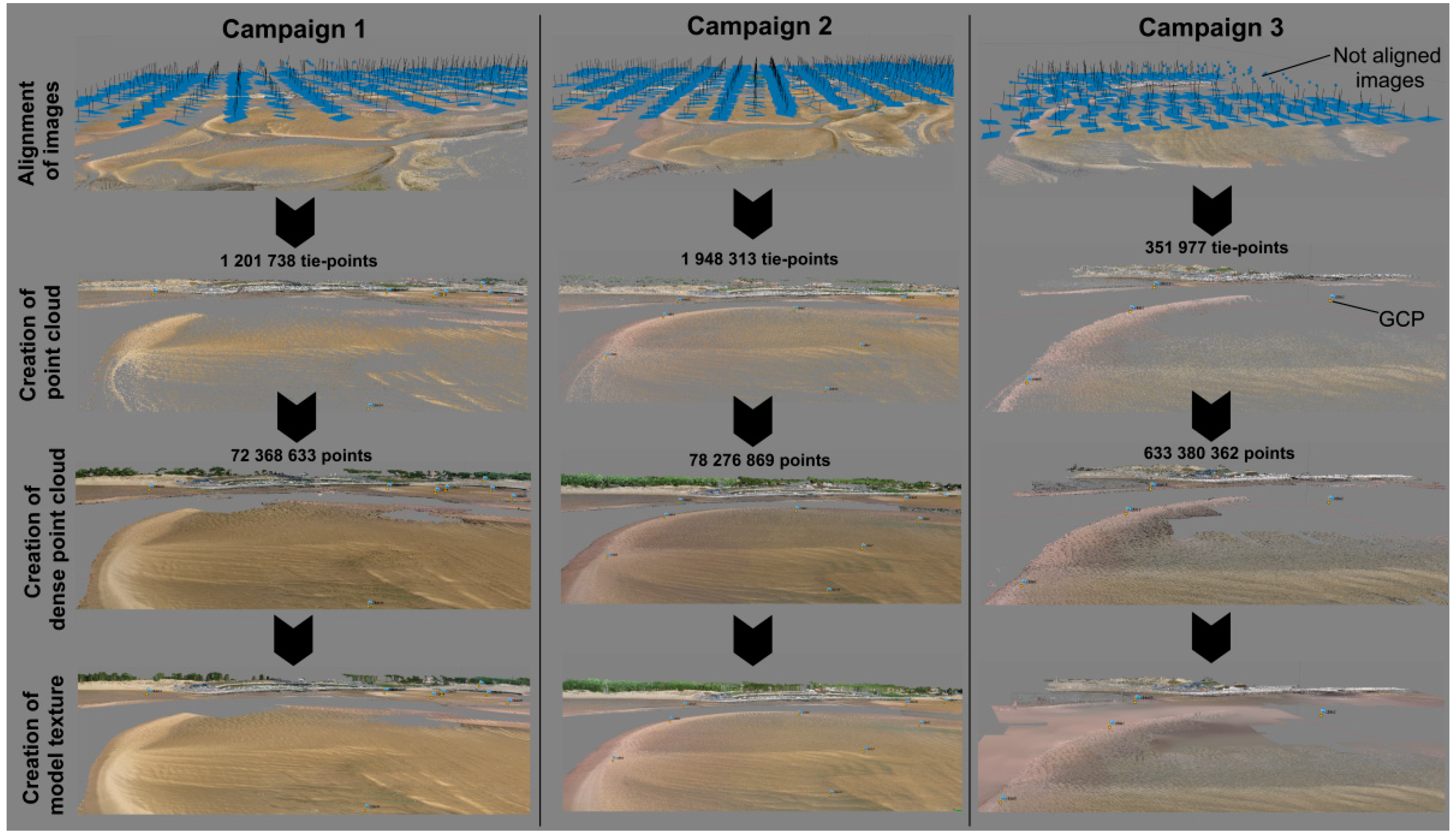 | Campaigns | No. Photo Used | No. Tie Points | X Error (m) | Y Error (m) | Z Error (m) | Error (m) | Error (pixel) |