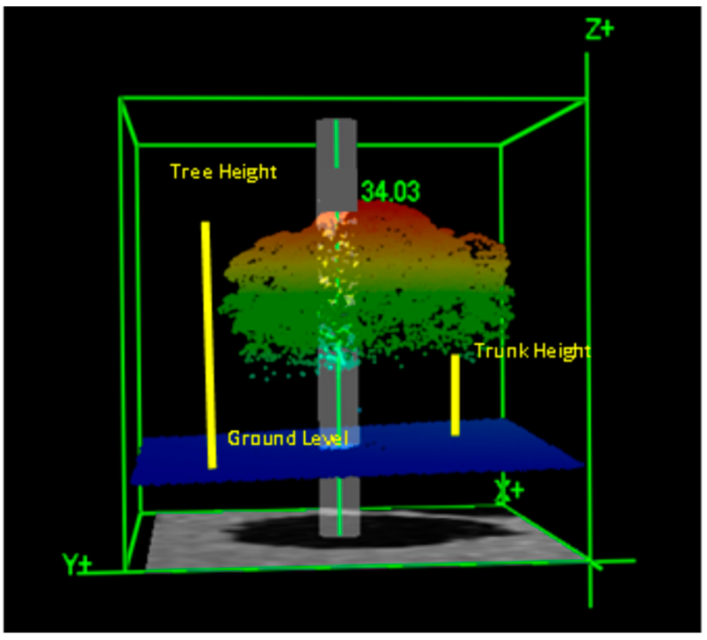 Summary statistics of the measured trees are given in Table 2. Due to the variability in tree species, and the irregular dimensions of the trees characteristics, tree height and trunk height (i.e., tree height − canopy height) exhibited significant variability (approx. 25% and 15%, respectively). Field measurements of tree height ranged from 12.7 m to 42.8 m with a SD of 5.3 m while trunk height measurements ranged from 3.6 m to 16.2 m with a SD of 2.6 m.