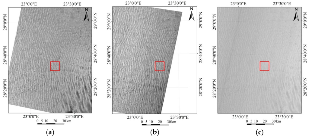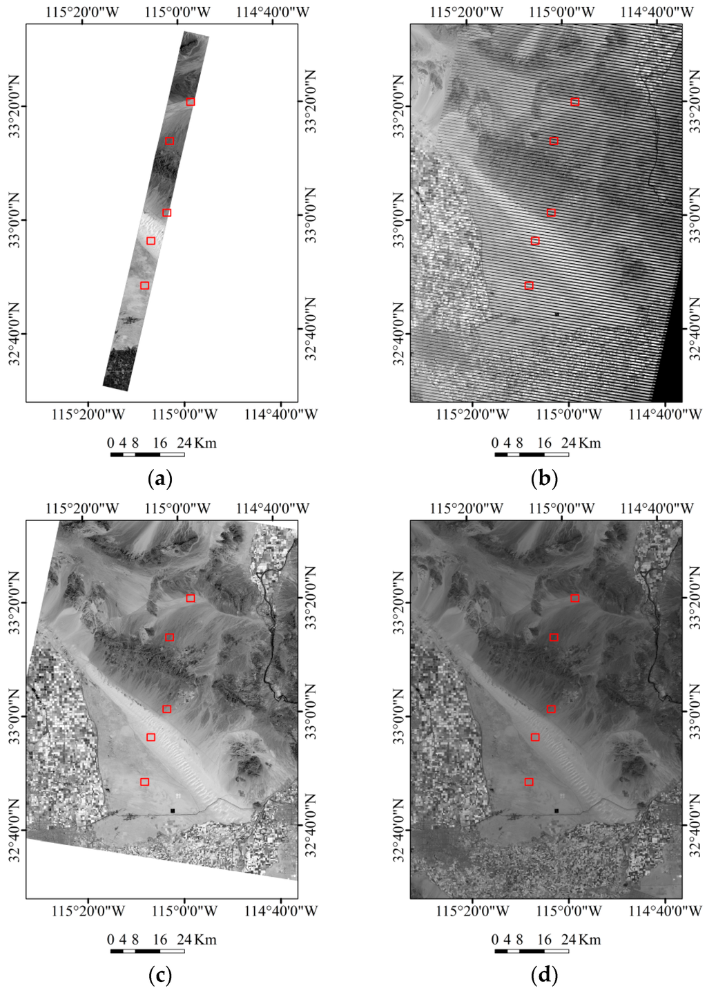 43], reflectance values higher than 0.3 over the entire spectral range are preferred. The selected reference surface at Algodones Dunes presents reflectance higher than 0.3 in almost the entire spectral range. As seen in