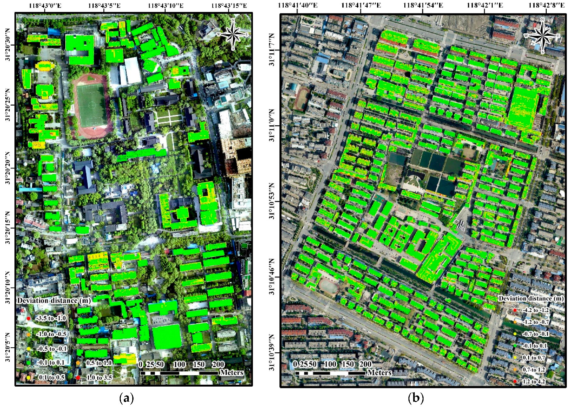 3.3.2. Deviation Analysis of the Reconstructed Building Roofs