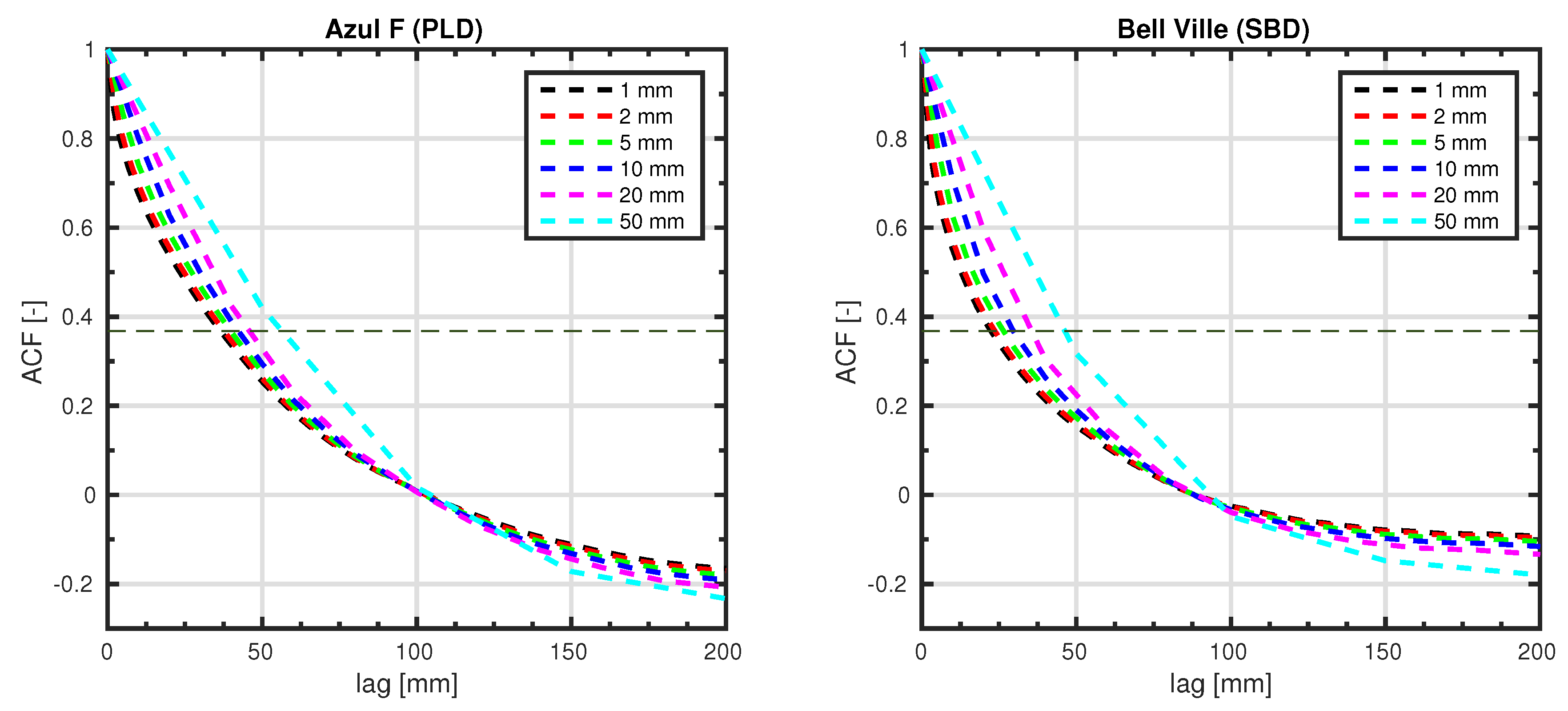 16]. Thus, the loss of high-frequency roughness component as the sampling interval increased led to an overestimation of the correlation length