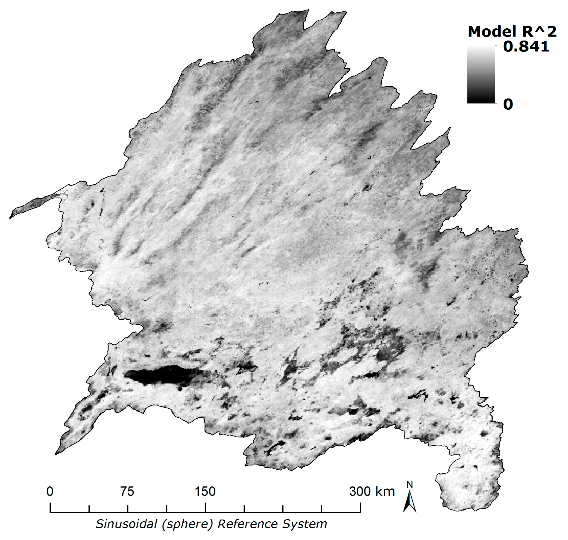 Multiple linear regression was used to model the series of monthly EVI composites as a dependent variable against the independent variables of precipitation and temperature. Through the use of the Earth Trends Modeler of the Idrisi Taiga software package [66], per-pixel slope and intercept terms were calculated as well as a spatially-explicit coefficient of determination for the modeled relationship. Models were generated using the seven-year series of 84 months as well seven independent annual series of 12 months/year. Model results of the seven-year series (R2) are shown in Figure 4.