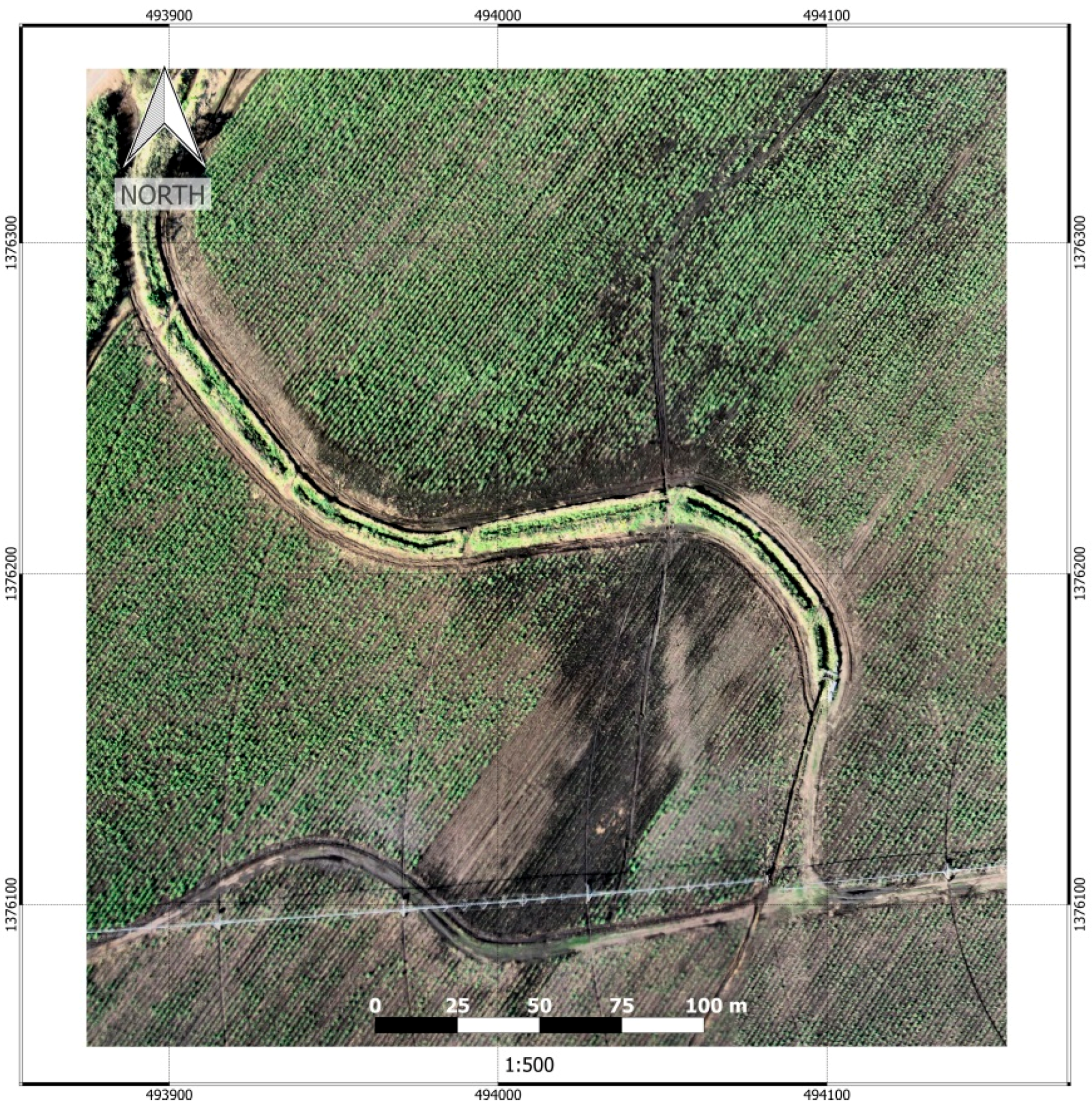 2.1. Study Site and Aerial Campaign