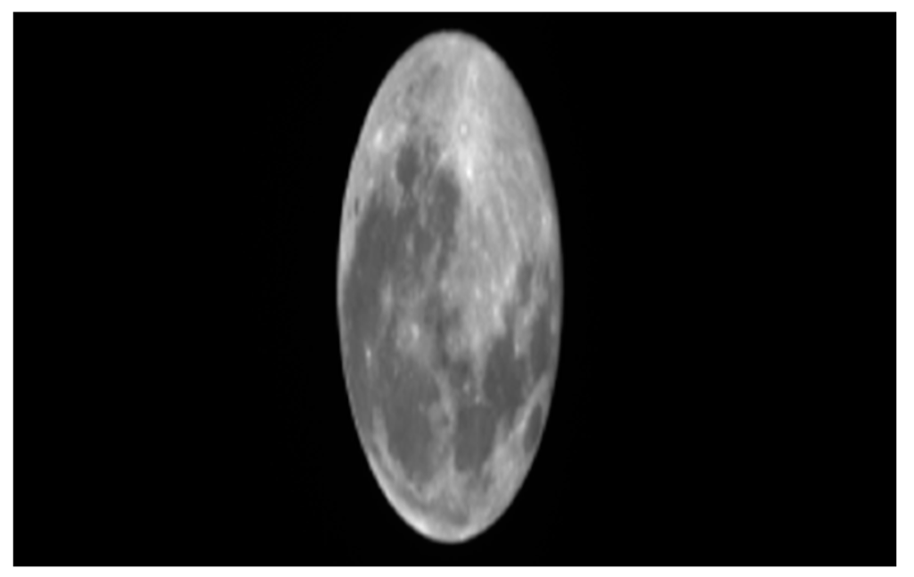 PROBA-V image of the moon. Due to the oversampling, the along track direction is elongated.