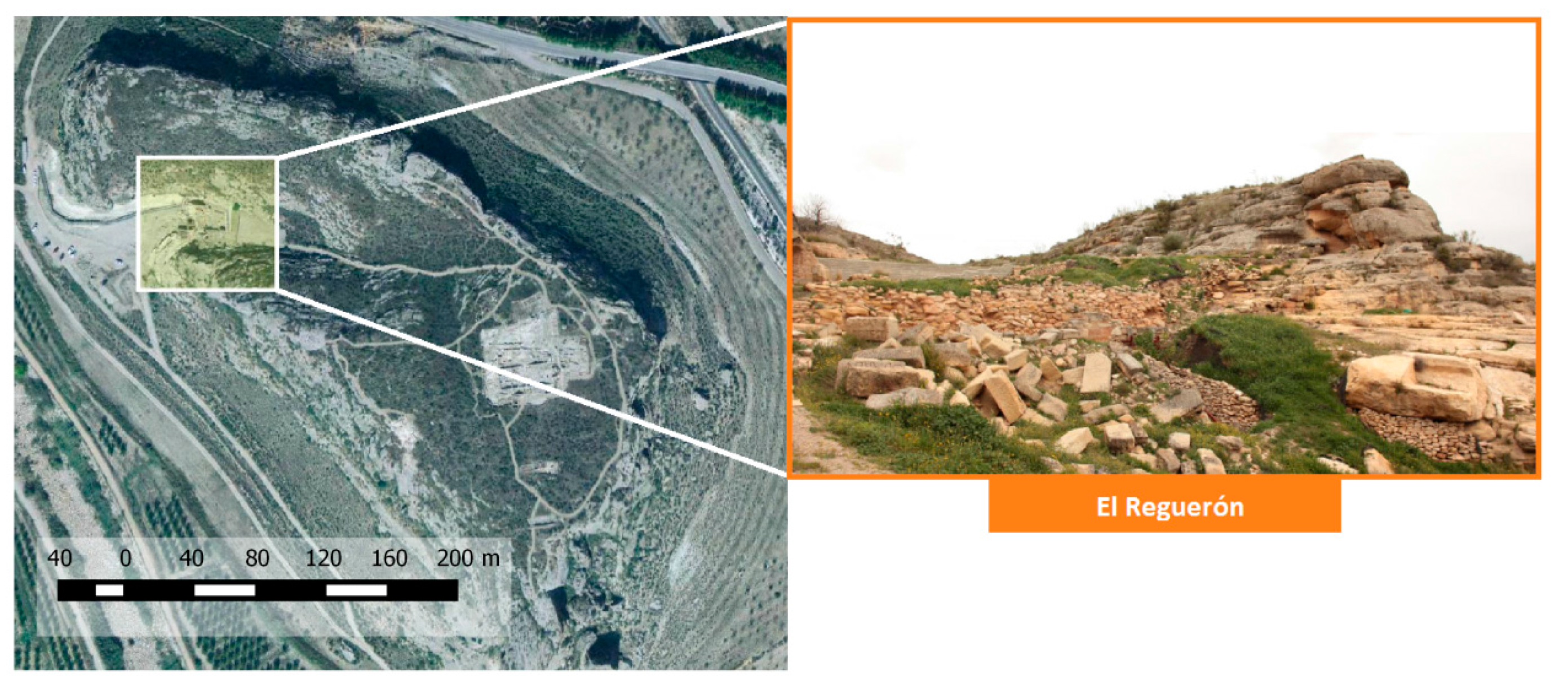 Figure 6) was a strategic settlement of great importance for several centuries, largely because of its peculiar topography and geographical location. It is placed on a plateau hill of about 50 m of height, located at the junction of the route from Complutum to Carthago Nova, one of the principal Roman routes connecting the interior of the plateau with the southeast coast, and a road connecting Castulo with Saetabis.