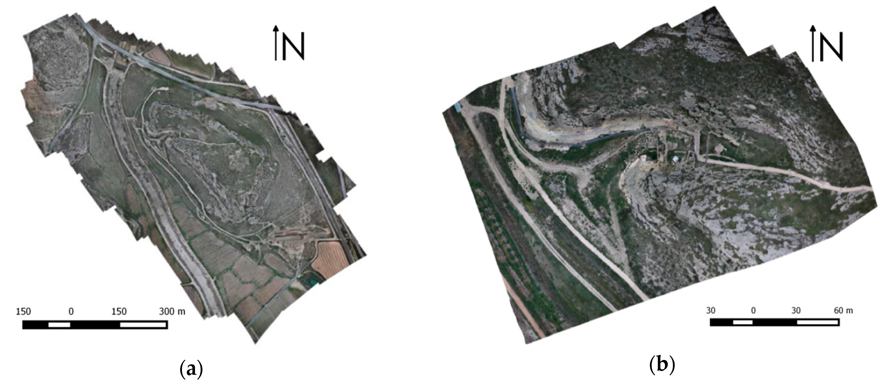 The application of the multi-data source and multi-sensor fusion workflow was tested in the study area of “Tolmo de Minateda,” which includes a total of 9 ha.