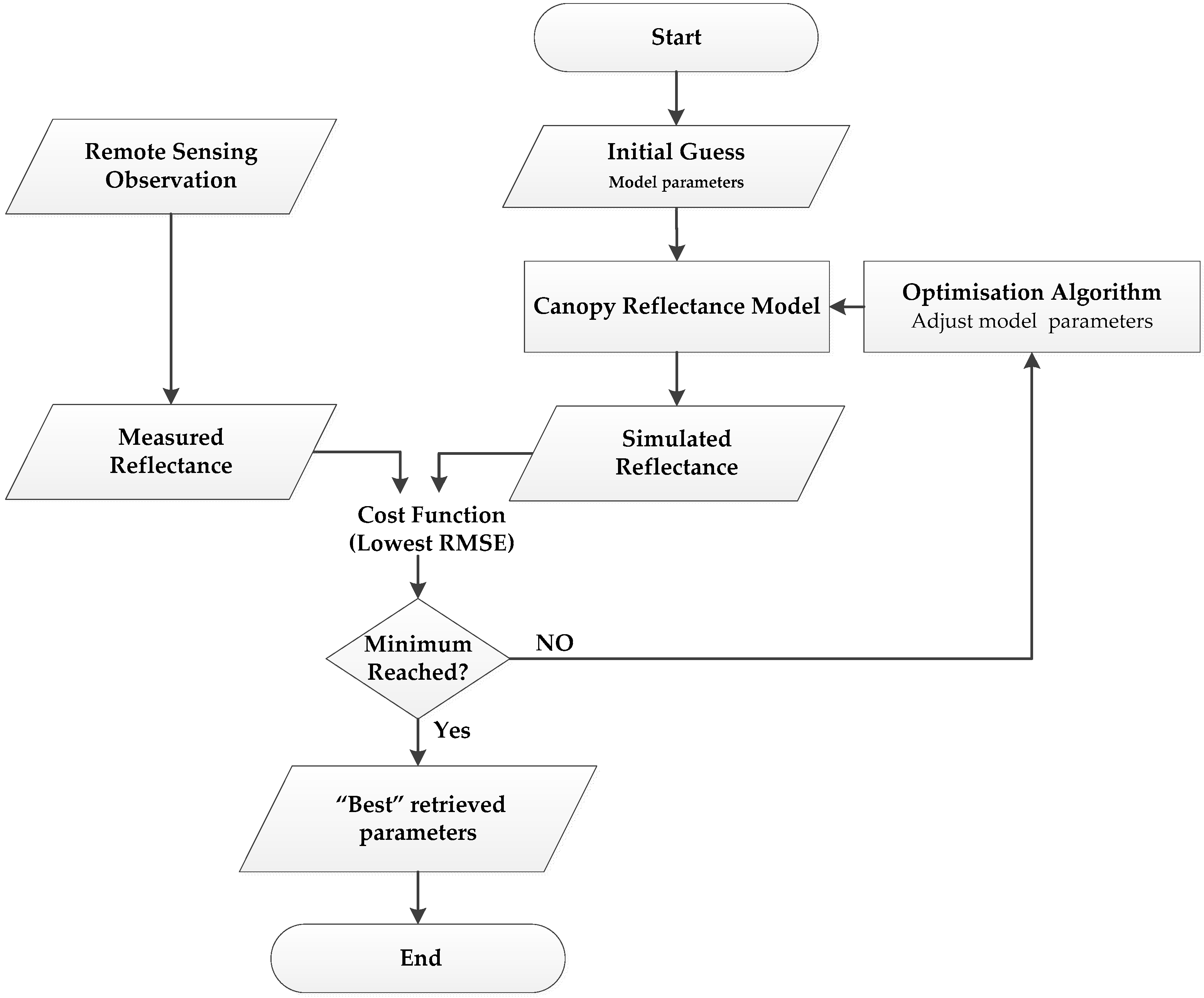 - Dorigo, W.A.; Zurita-Milla, R.; de Wit, A.J.W.; Brazile, J.; Singh, R.; Schaepman, M.E. A review on reflective remote sensing and data assimilation techniques for enhanced agroecosystem modeling. Int. J. Appl. Earth Obs. Geoinf. 2007, 9, 165–193. [Google Scholar] [CrossRef]