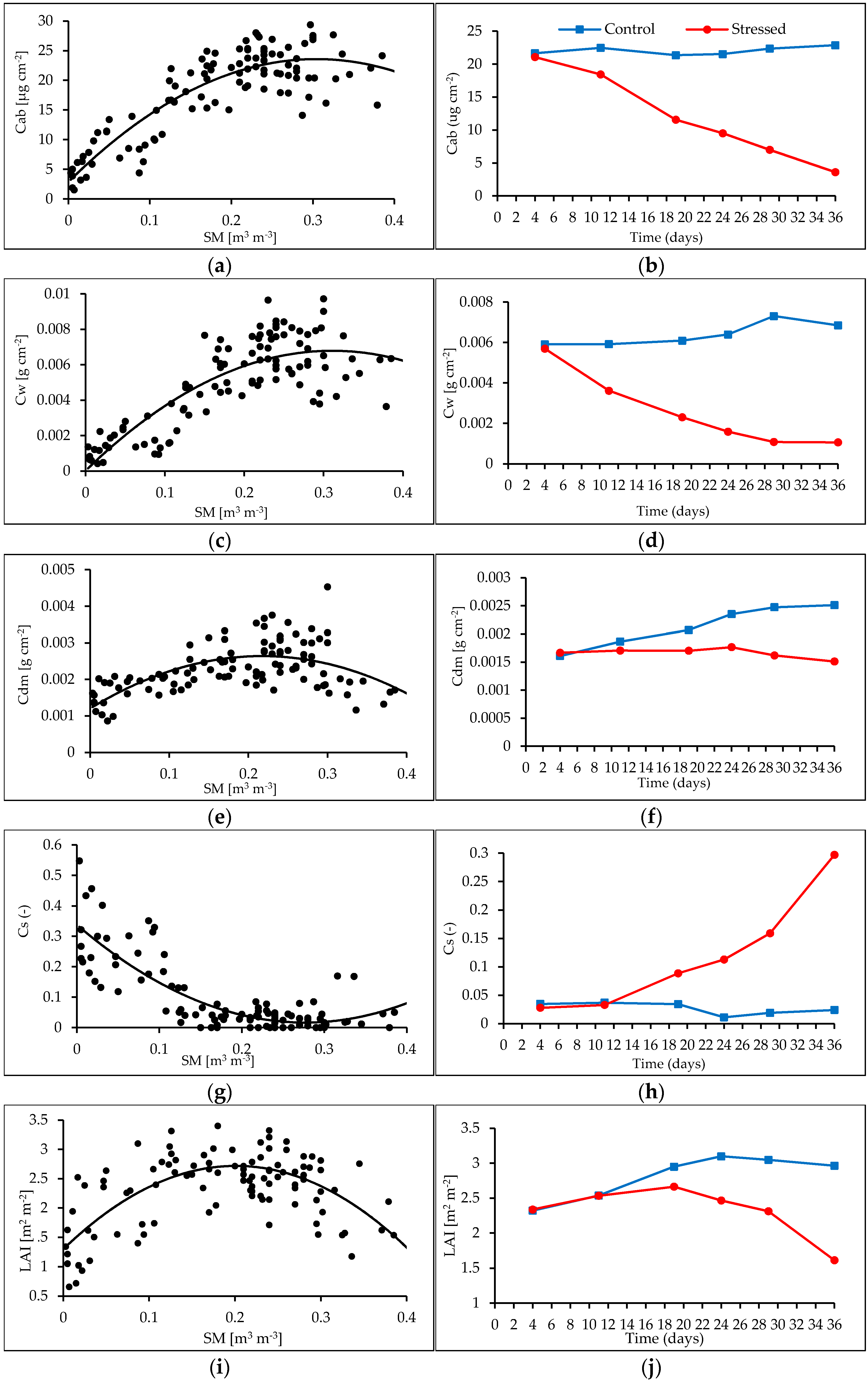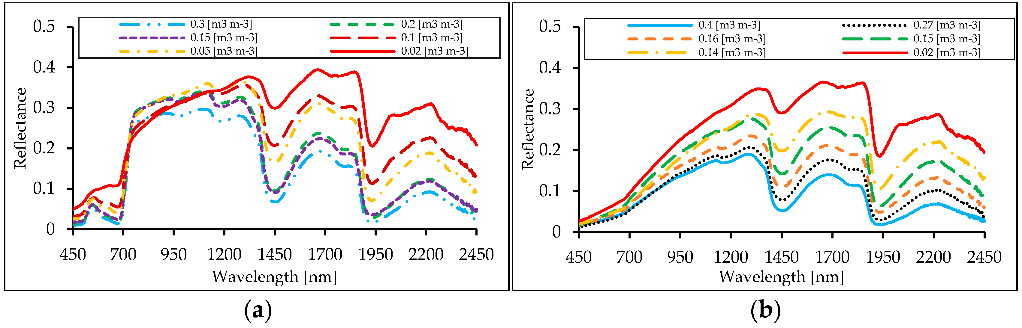 - Borzuchowski, J.; Schulz, K. Retrieval of Leaf Area Index (LAI) and Soil Water Content (WC) Using Hyperspectral Remote Sensing under Controlled Glass House Conditions for Spring Barley and Sugar Beet. Remote Sens. 2010, 2, 1702–1721. [Google Scholar] [CrossRef]