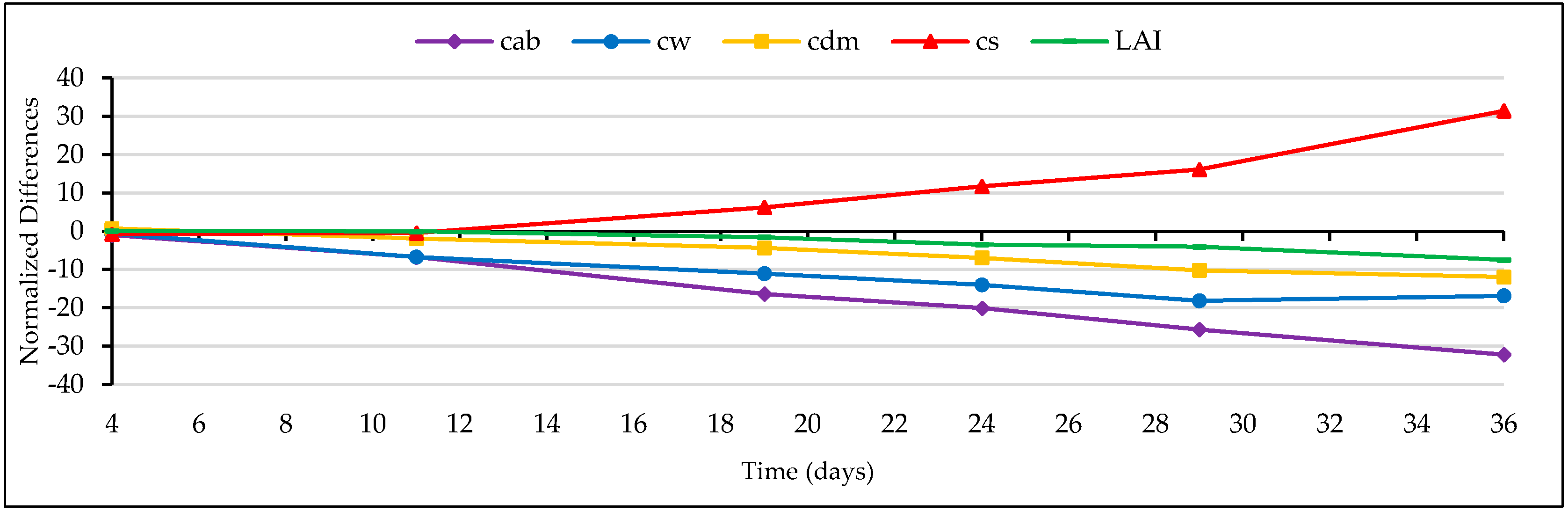 | Leaf chlorophyll content | Cab | Μg·cm−2 | 0–100 | 0.0008 |