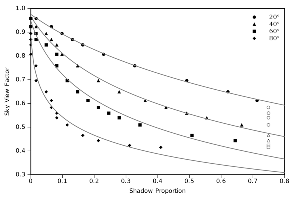 - Holmer, B. A simple operative method for determination of Sky View Factors in complex urban canyons from fisheye photographs. Meteorol. Z. 1992, 1, 236–239. [Google Scholar]