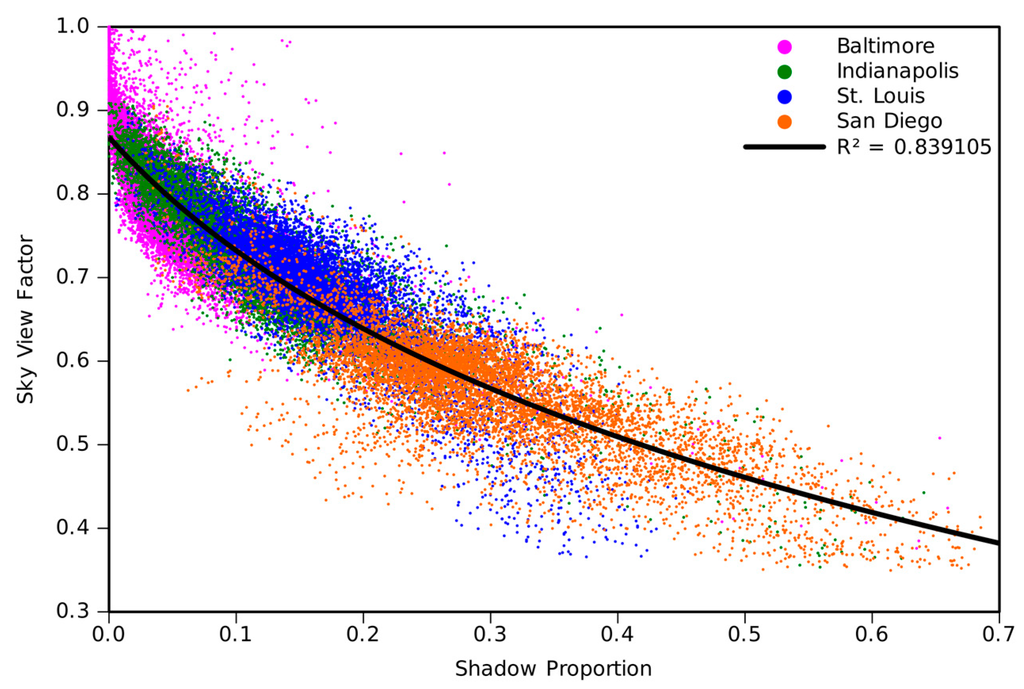 Estimation of Continuous Urban Sky View Factor from Landsat Data Using Shadow Detection