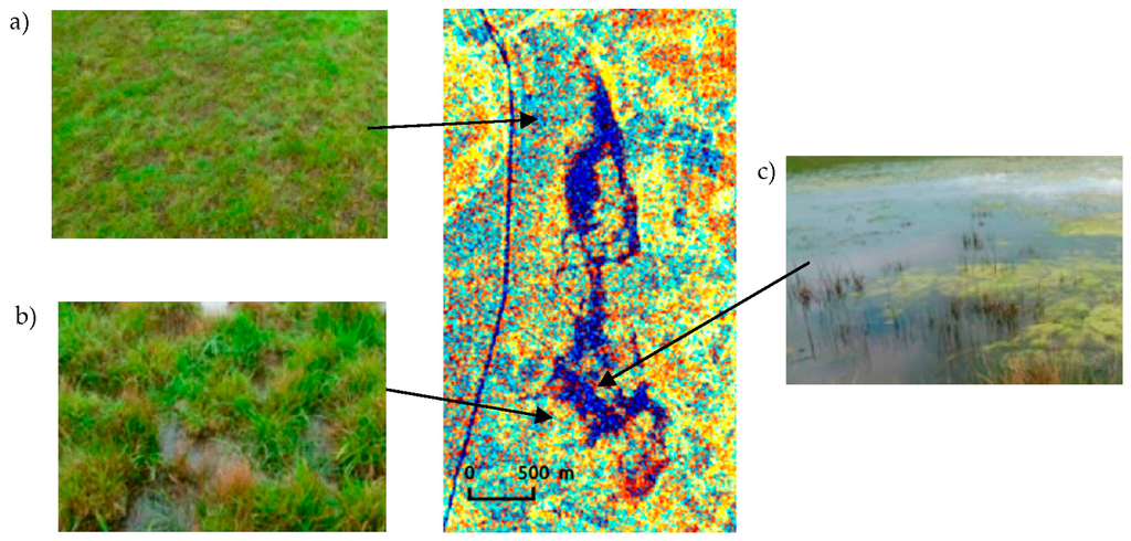 - Maréchal, C.; Pottier, E.; Hubert-Moy, L.; Rapinel, S. One year wetland survey investigations from quad-pol RADARSAT-2 time-series SAR images. Can. J. Remote Sens. 2012, 38, 240–252. [Google Scholar] [CrossRef]