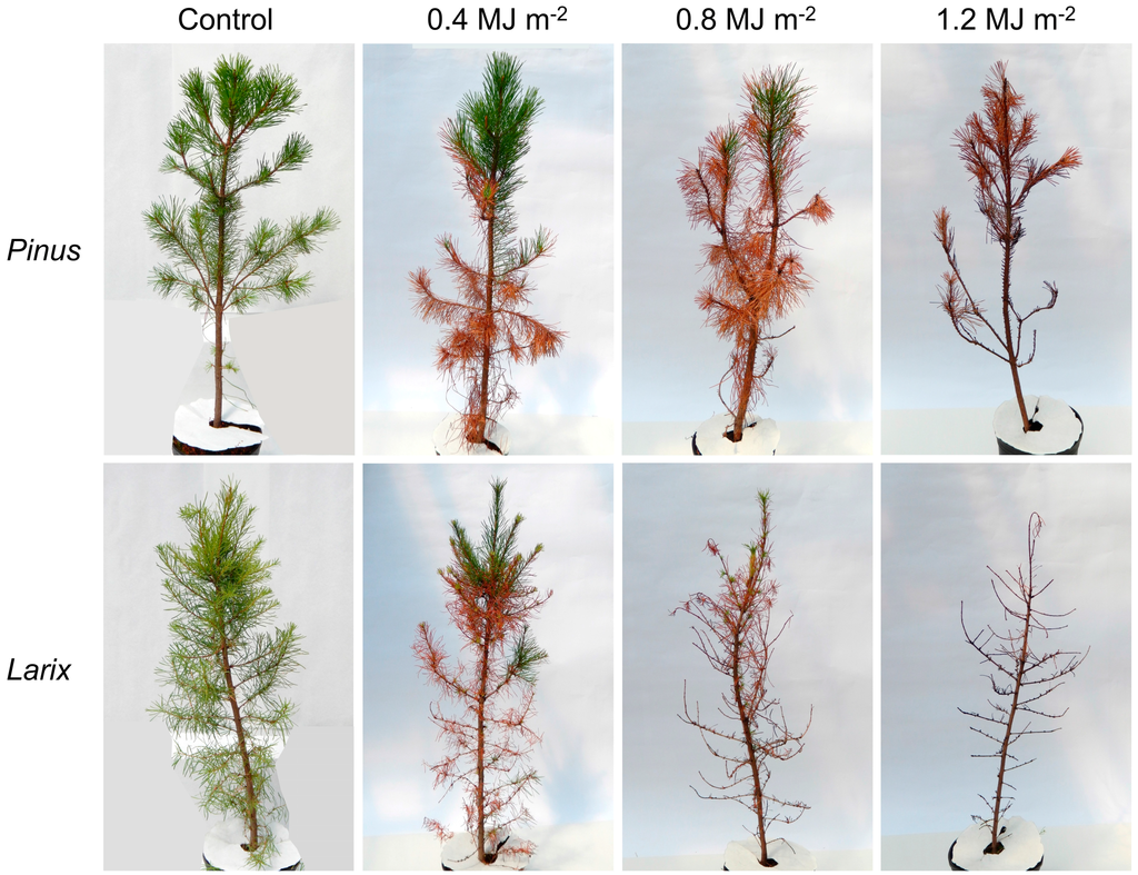 The following are available online at www.mdpi.com/2072-4292/8/7/572/s1, Table S1: Pre- and post-fire spectral reflectance data for Pinus and Larix seedlings.