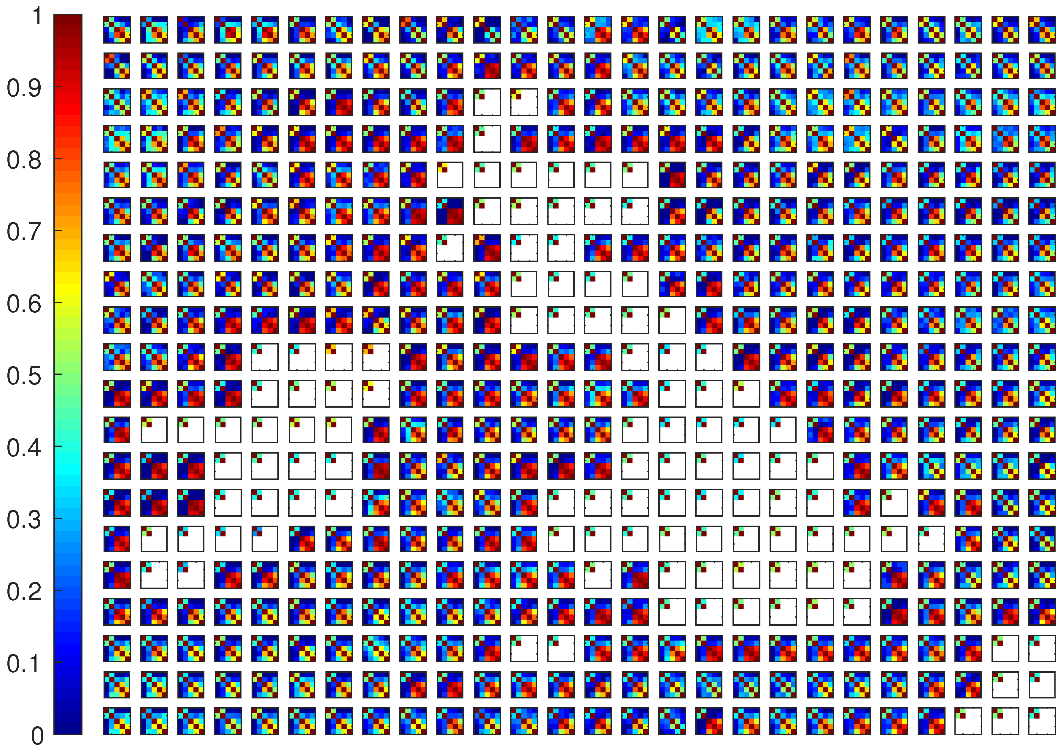 Estimated observation error correlation matrices for sub domains of the UKV.