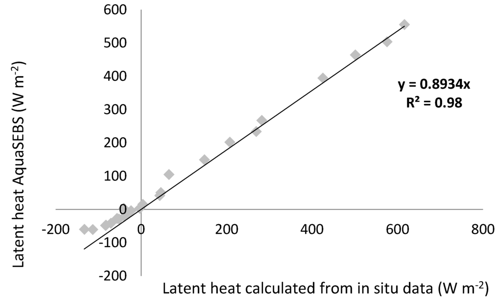 Comparison between the latent heat calculated by AquaSEBS and the in situ data measured over Lake Tana [11].