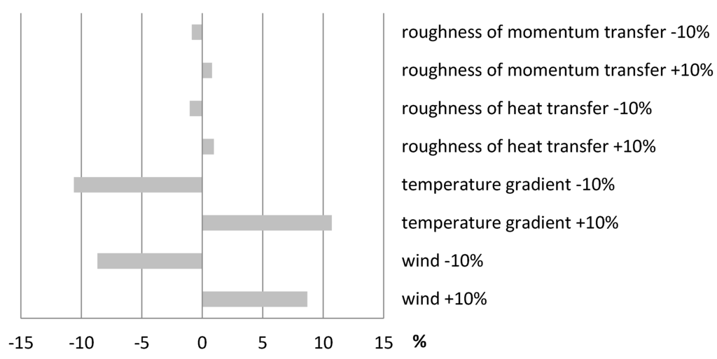 The modelled sensible heat flux is more sensitive to the air temperature and wind speed than to the parameters of aerodynamic resistance. Figure 7 shows that the temperature difference is the main variable that controls the sensible heat over water surfaces. It was found that the influence of roughness height of momentum and heat on the modelled sensible heat does not exceed 6.5% when the roughness parameters are within 50% of their actual values (Figure 8).