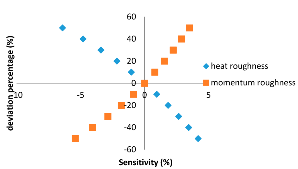 Sensitivity of estimated sensible heat to roughness heights for momentum and heat transfer.
