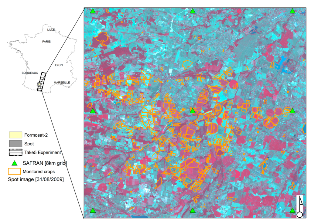 The proposed approach was designed by analyzing multi-spectral Formosat-2 and Spot (4 and 5) images, regularly acquired during successive agricultural seasons from 2006 to 2013. The main characteristics of the satellite images are presented below.