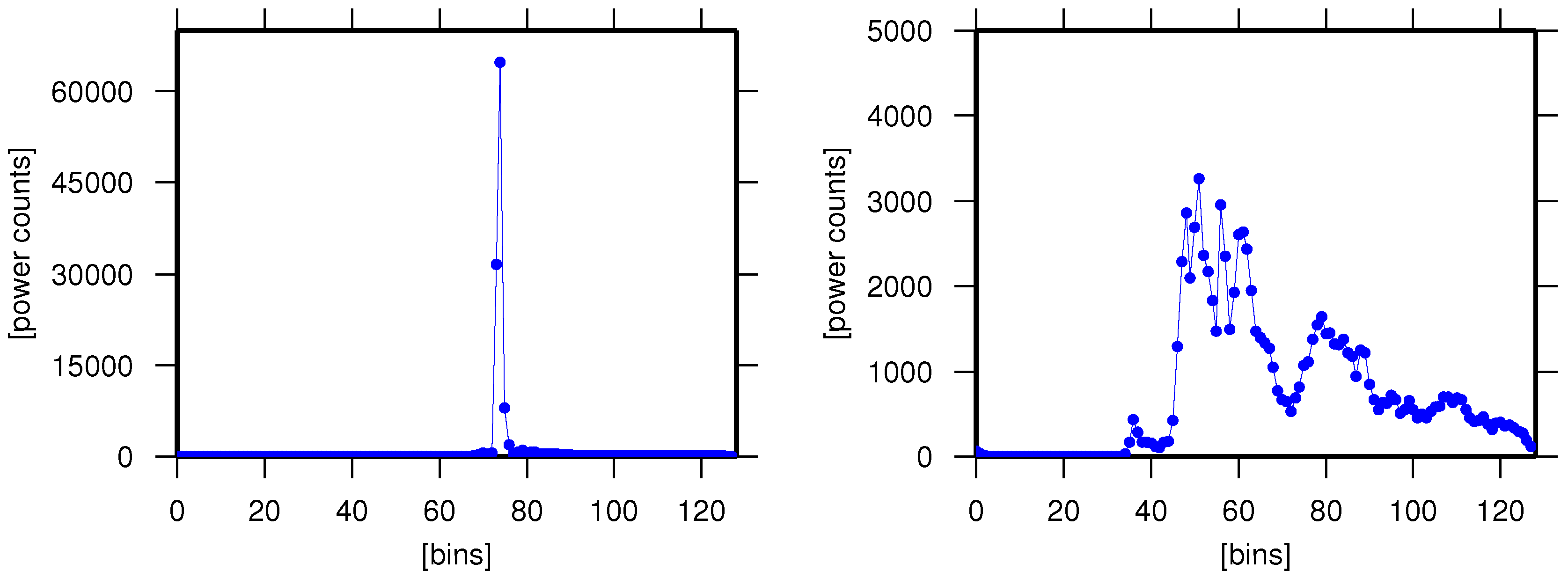 Two examples of ENVISAT waveforms: quasi-specular waveform over water (left) and corrupted waveform over land (right).