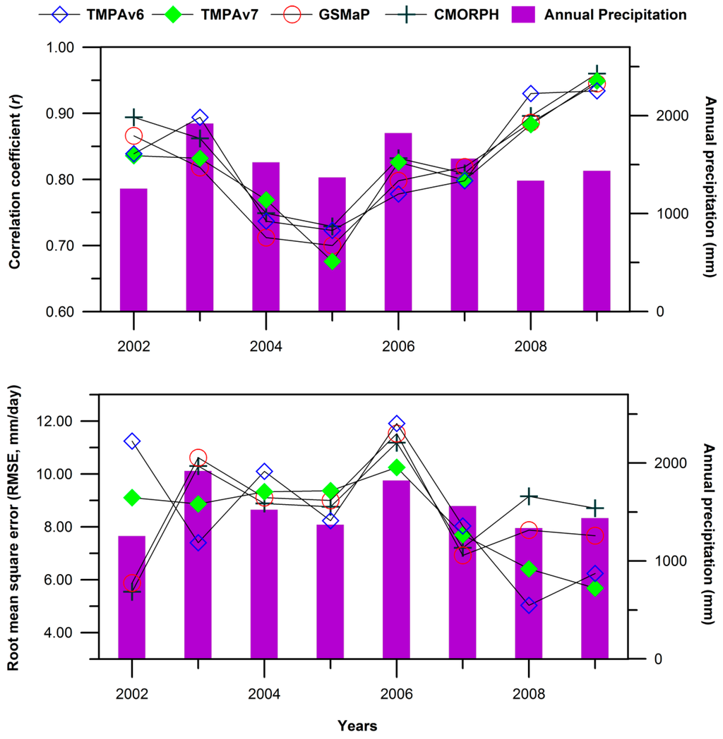 3.3. Quantitative Verification of Satellite-Derived Precipitation