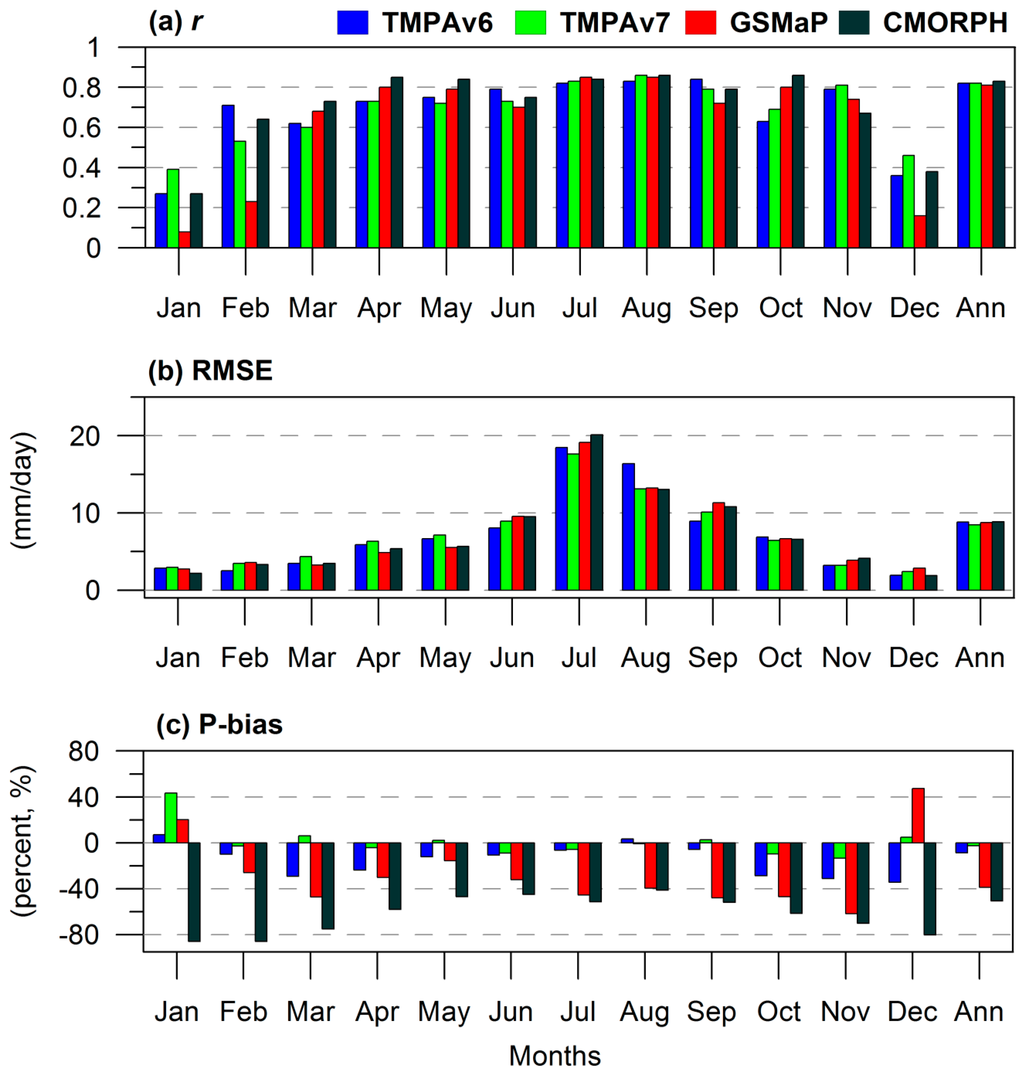 3.2. Spatial Evaluation of Satellite-Derived Precipitation