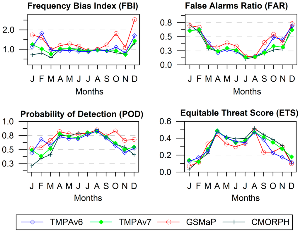 2.3. Performance Statistics for Precipitation