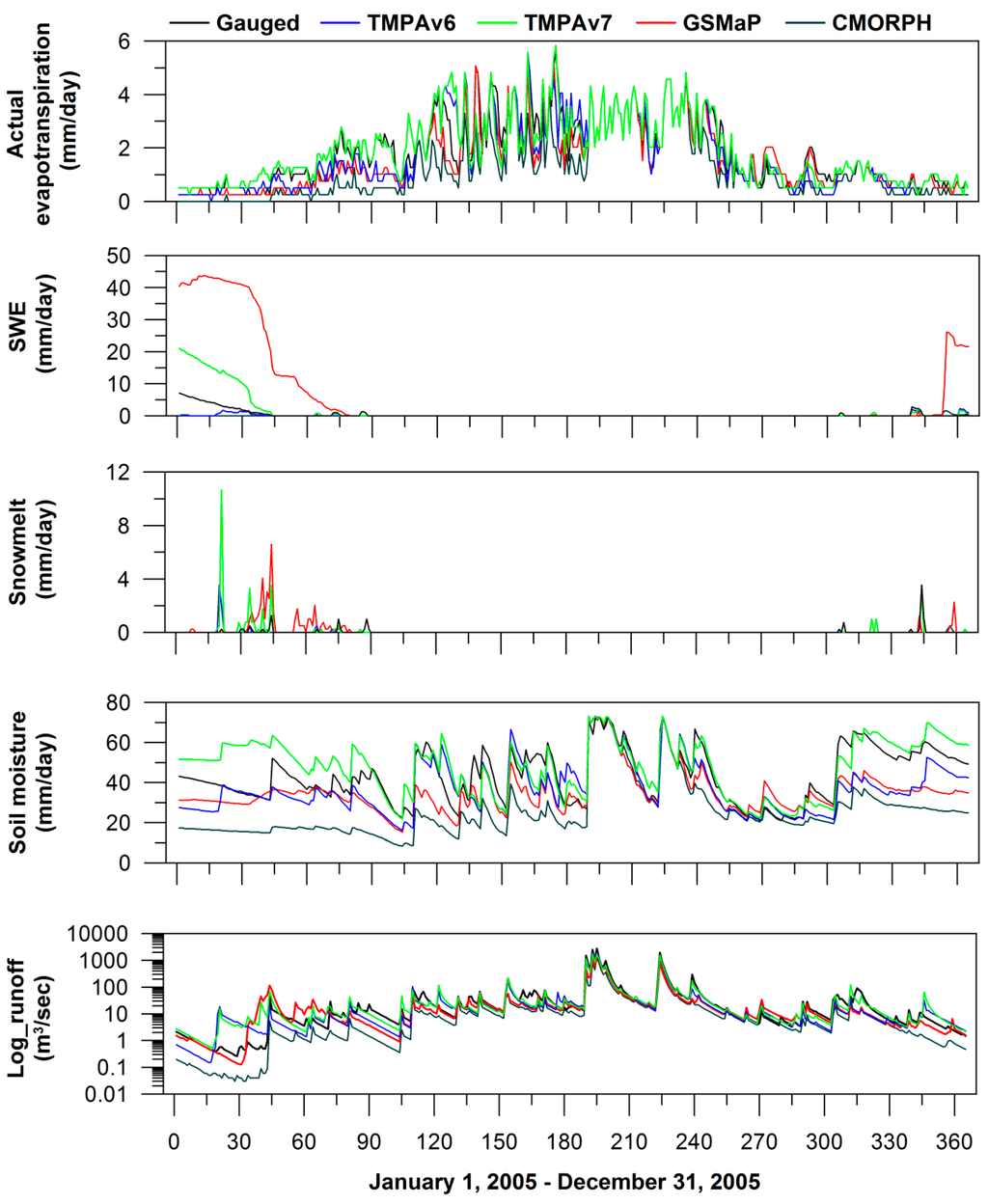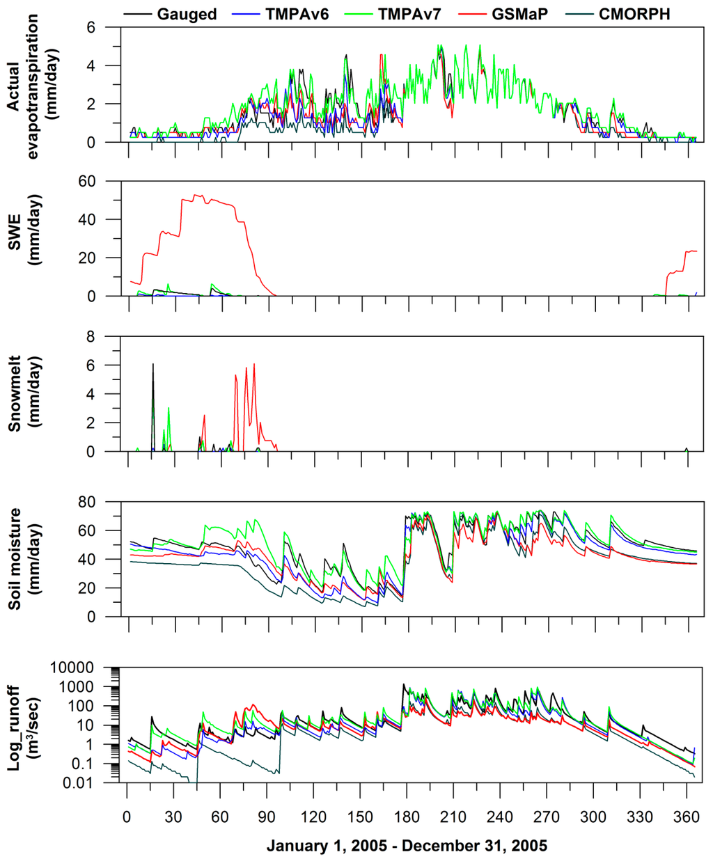 3.5. Cause of Uncertainties in Streamflow Simulations Using Satellite-Derived Precipitation