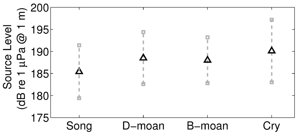 2.6. Source Levels of Humpback Song and Non-Song Vocalization Types