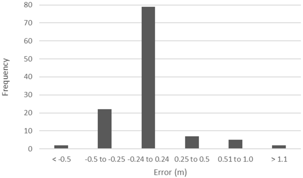 Frequency of error between measured and calculated water depth.