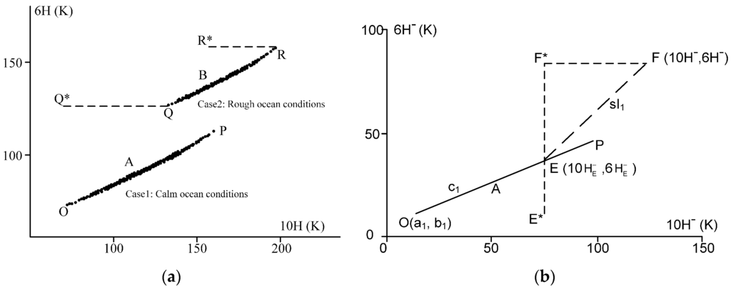 (a) Brightness temperatures of 6H and 10H: group A for calm ocean conditions and group B for rough ocean conditions; (b) Thematic figure drawn from (a). The two figures can be found in [15].