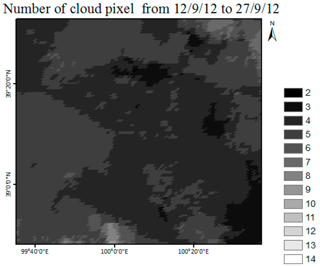 The accumulation of cloudy pixels during the retrieval period (12–27 September 2012).