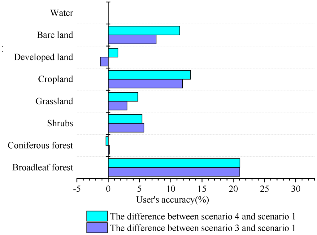 The differences in user’s accuracy between scenarios.