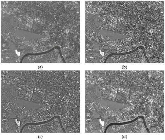 The visual interpretation of remote sensing images is still important. Furthermore, the visual quality of the images affects the results of the automation (e.g., in land use/cover classification, in image segmentation, image matching). For the automatic processes, the enhanced images with a large range of DN can be stored with any number of bits. The proposed WLCE can be extended to colour images. In order not to increase the calculation load, it would be necessary to use a model that isolates the intensity component and chromatic components (such as Lab, Luv). Then the wavelet enhancement would be applied only to the component of intensity, and the chromatic components would be unchanged or processed using simple means, such as histogram stretching. Verification of this hypothesis requires further detailed research.