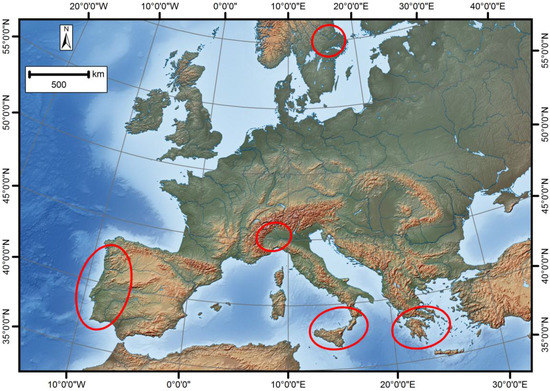 The test sites where the developed hotspot detection processor was validated are located in different European regions: Portugal, Greece, Sicily, Piedmont and Sweden (Figure 1).