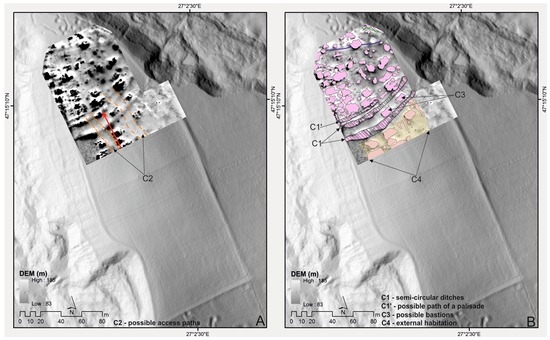 2 resolution, which permitted computation of the geomorphological parameters (hypsometry, slopes) of the area neighbouring the site to identify visible cultural anomalies on the settlement’s surface. However, the Light Detection and Ranging (LiDAR) data were mainly used to identify natural and anthropogenic hazards that affect the landform upon which the settlement is located.