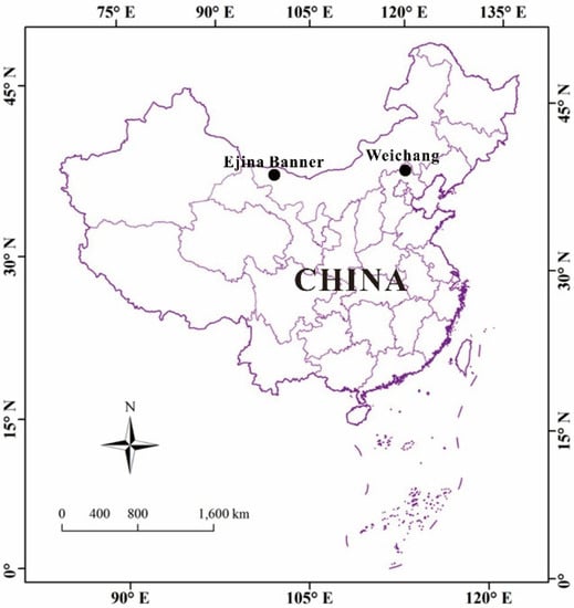 The two study regions were savanna communities situated in Ejina Banner and Weichang county, as shown in Figure 1.