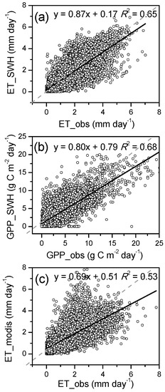 - Cleugh, H.A.; Leuning, R.; Mu, Q.Z.; Running, S.W. Regional evaporation estimates from flux tower and MODIS satellite data. Remote Sens. Environ. 2007, 106, 285–304. [Google Scholar] [CrossRef]