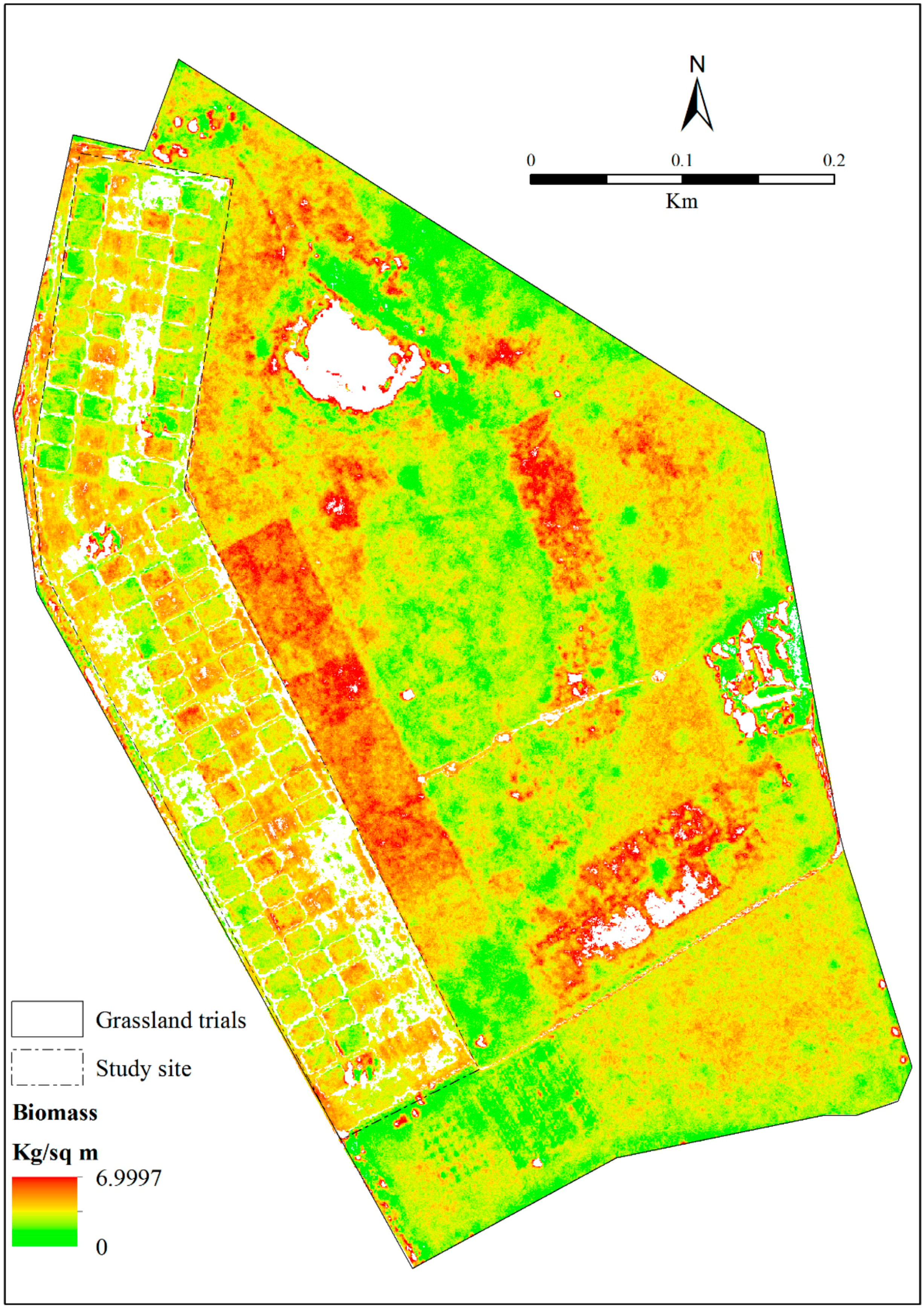 Spatial distribution of biomass across different grassland management treatments.