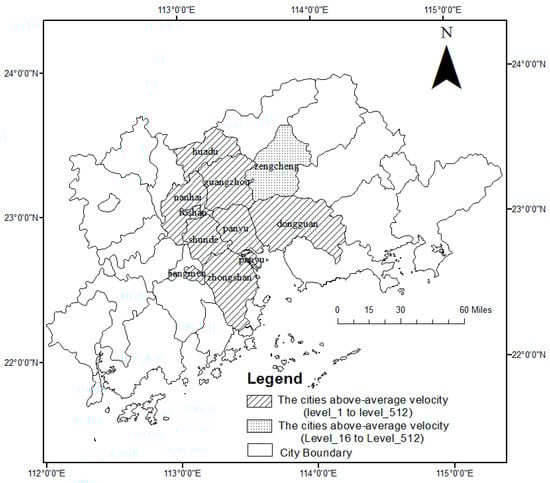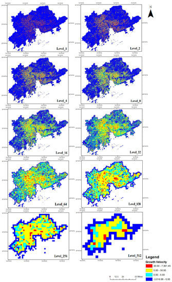 5.2. Spatial Variances of the Multi-Resolution Urbanization Velocity Analysis Results
