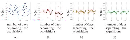 Measured deformation given the number of days separating the acquisitions. (a)