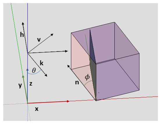 To calculate the theoretical orientation of any vector of our ground truth in the wave plane, it is sufficient to first calculate its projection in this wave-plane by . In the particular case represented in Figure 12 where is horizontal: