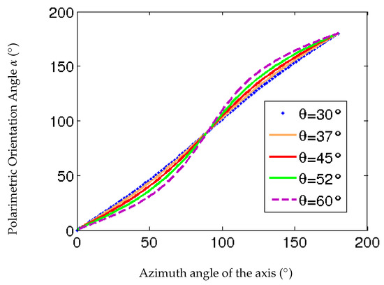 However, the difference between azimuth and polarimetric angle is not very important for low incidence we are considering. The relation between and has been plotted in Figure 13 for several incidence angles ; the incidence angle of the images is 34.